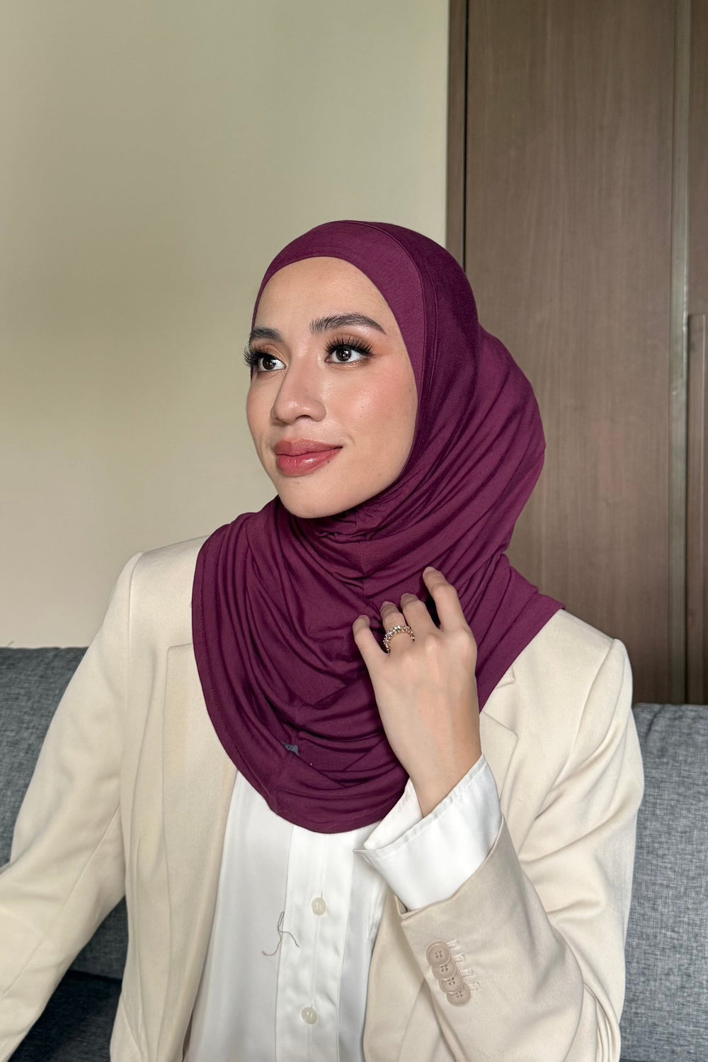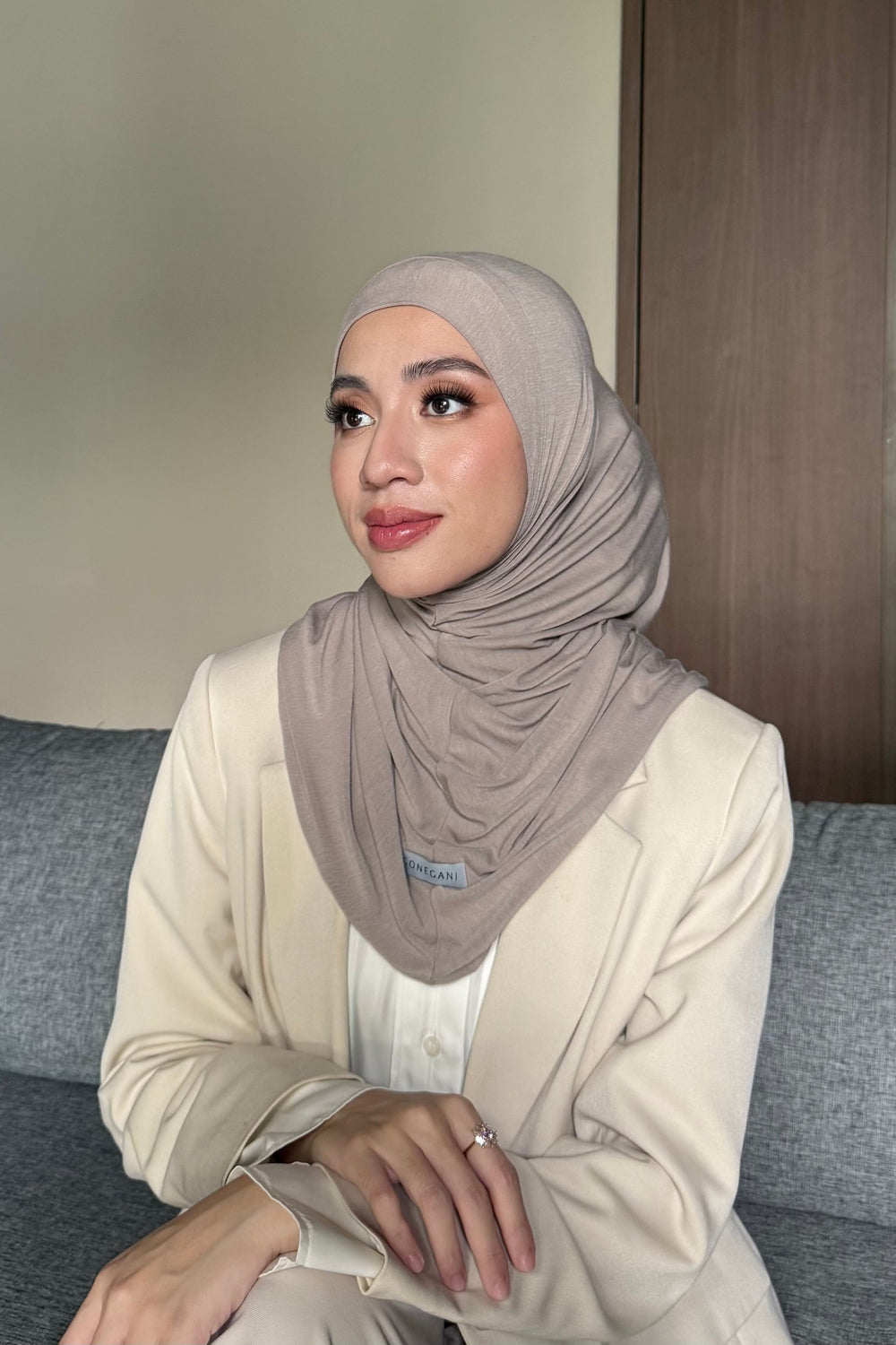 Desain mini bergo memudahkan pemakaian tanpa perlu styling rumit, sempurna untuk aktivitas sehari-hari maupun acara formal.